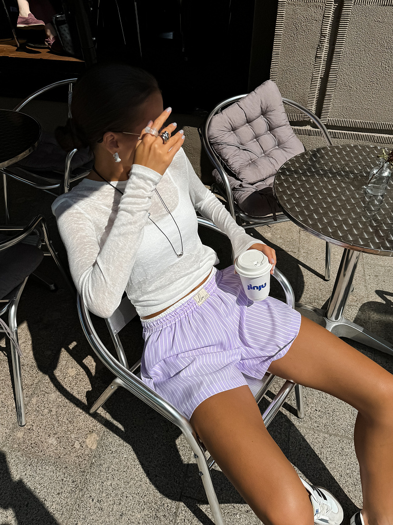 Шорты в меру свободного кроя с имитацией. Исполнены из дышащего материала на основе хлопка