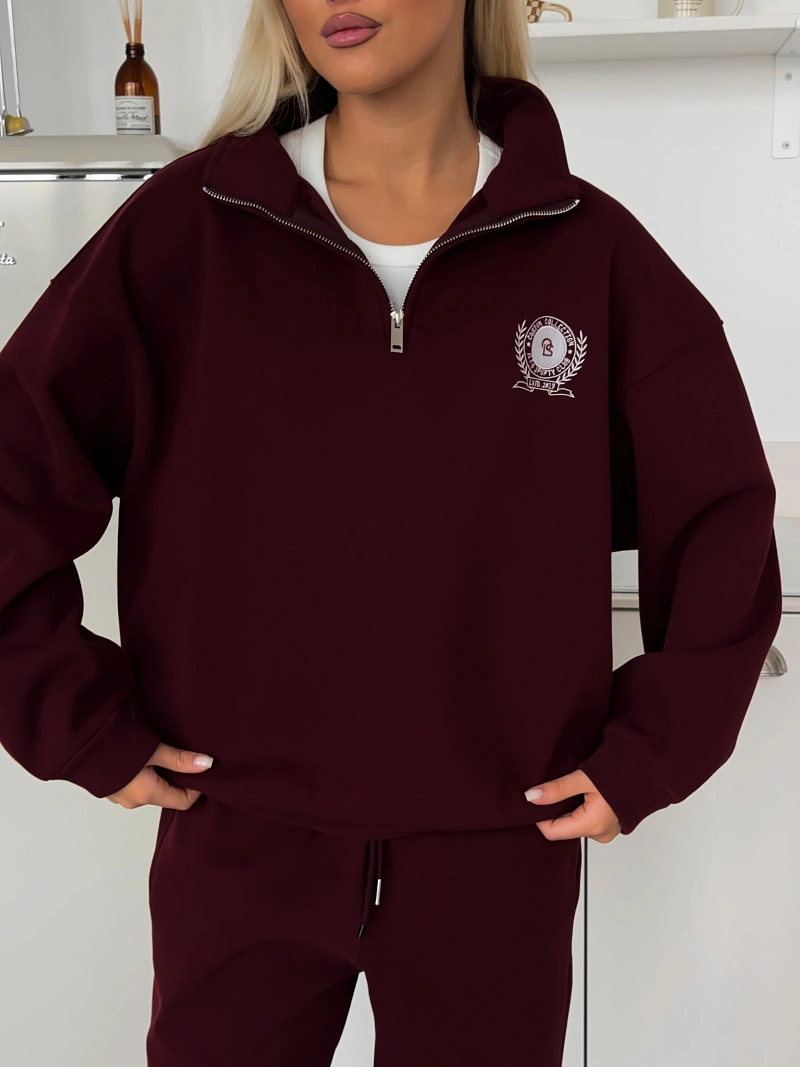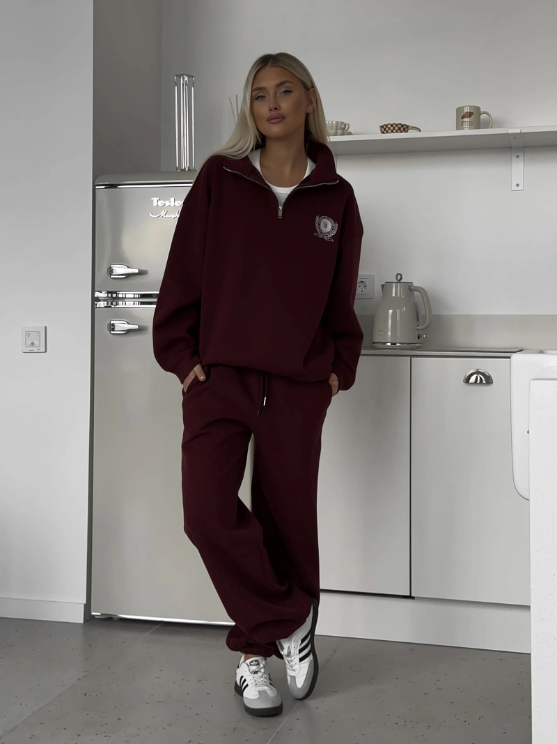 Расслабленная толстовка oversize со спущенной линией плеча и широкими длинными рукавами, дополненными манжетами для комфортной посадки. Модель выполнена из мягкого трикотажа с peach-эффектом, который придаёт ткани бархатистую текстуру, а велюровая подкладка обеспечивает дополнительное тепло и уют. Высокий воротник-стойка с застёжкой на металлическую молнию добавляет практичности и позволяет регулировать посадку в зависимости от погоды. Акцентным элементом выступает брендированная вышивка, подчеркивающая стиль и индивидуальность модели.