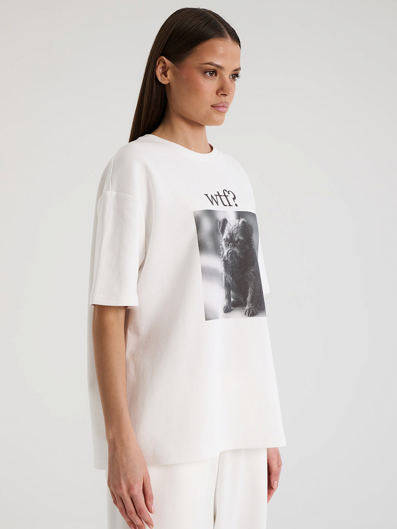 Футболка на основе дышащего хлопка. Акцентом изделия сделан принт, нанесенный в технике шелкографии